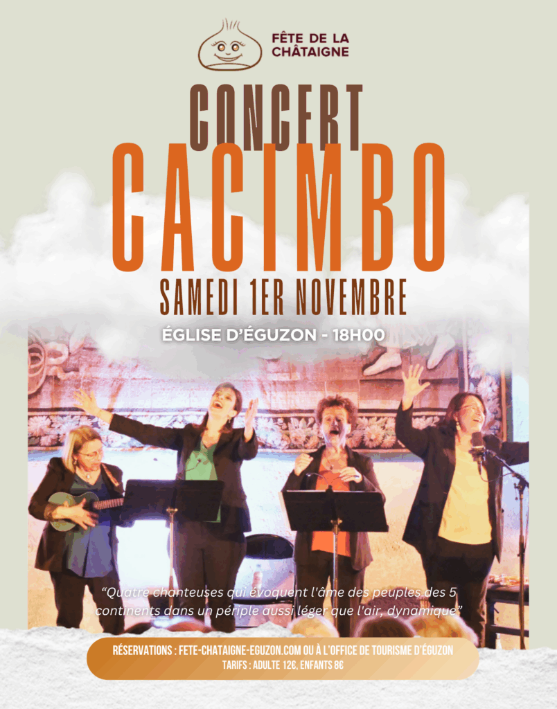 Samedi 1er novembre : Concert Cacimbo en l’église d’Eguzon Réservation obligatoire en ligne sur le lien suivant : Concert cacimbo